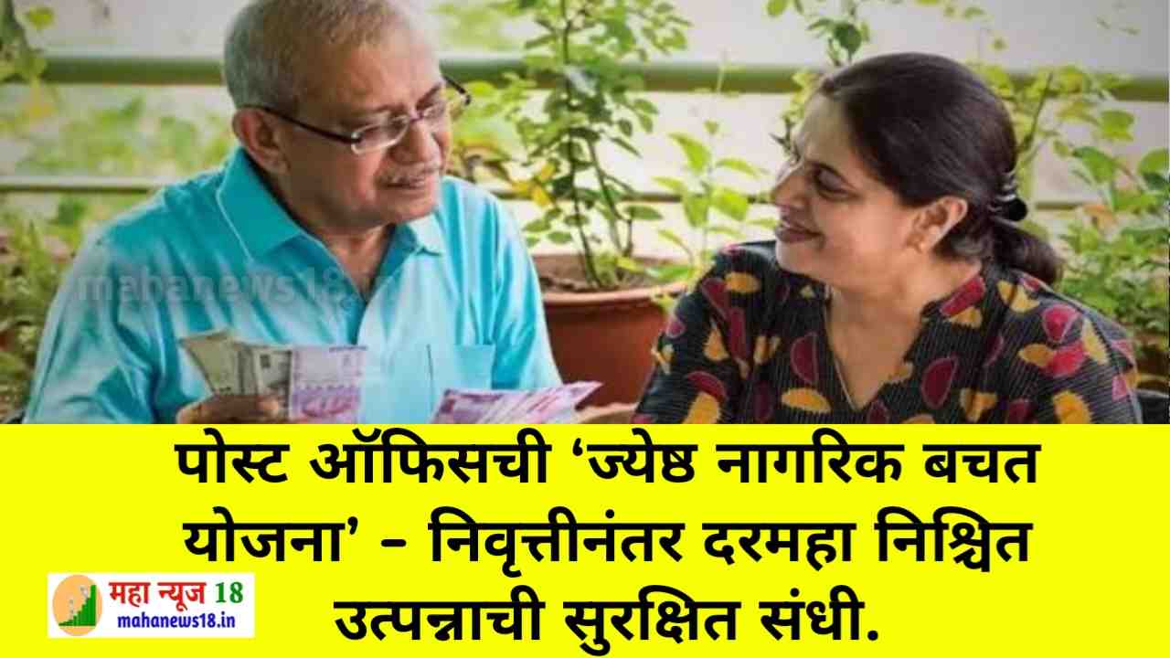 पोस्ट ऑफिसची ‘ज्येष्ठ नागरिक बचत योजना’ – निवृत्तीनंतर दरमहा निश्चित उत्पन्नाची सुरक्षित संधी.