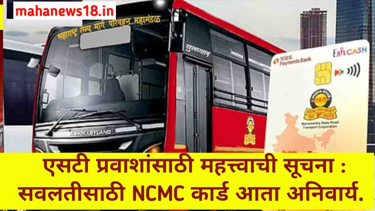 एसटी प्रवाशांसाठी महत्त्वाची सूचना : सवलतीसाठी NCMC कार्ड आता अनिवार्य. MSRTC NCMC Card
